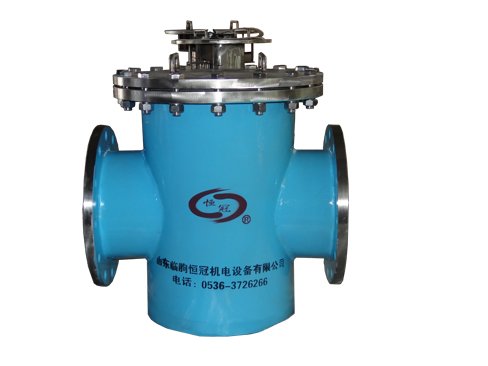 除铁器串接于流体物料输送管道上使用,当物料流经该除铁器时,其中的铁磁性物质被吸附到管道除铁器的不锈钢管壁上,由于磁场采用高强梯度磁源,当物料流经除铁器时,磁性杂质(譬如铁丝、铁钉等)被牢牢吸附,实现磁性杂质与浆、粉状物料分离。在设定时间内需要清除磁性物质时,打开固定除渣门的螺栓,抽出磁棒进行清理,完毕后重新放入,对齐螺栓孔,穿入螺栓拧紧即可。